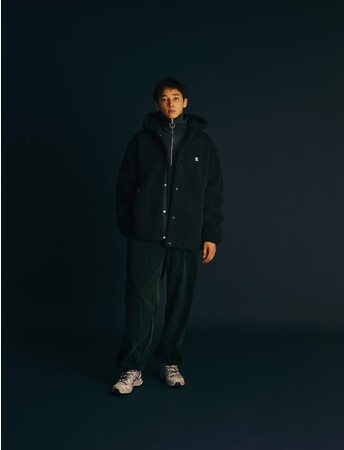 ボア感のあるクラシカルな風合いが特徴のパイルをベースに、さらに厚手で保温力を向上させたファイバーパイルサーモのコーチジャケットです。 防風性のある裏地と組み合わせたコーチジャケットは、寒いシーズンのアウターとして活躍します。シルエットはトレンド感のあるややゆったりめのシルエットで、タウンユースでのコーディネートがしやすいデザインに仕上げています。両サイドのポケットは、上部の舟型デザインがさりげないアクセントに。リサイクル糸を使用した環境配慮型素材を使用しています。