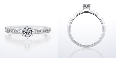 中心に向かってアームが細くなることでセンターダイヤモンドに視線を集め、完全なる美を表現しています。