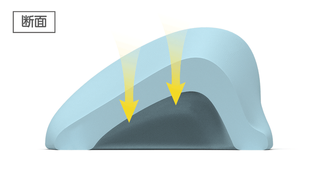 頭を預けることで、重みをやさしく受け止めてフィットするので、手でやさしく包まれているような感覚を実感できます。