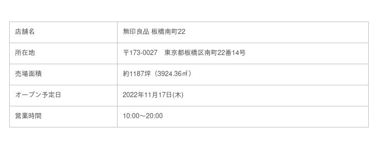 無印良品 板橋南町22特設サイト:https://shop.muji.com/jp/itabashi-minamicho/