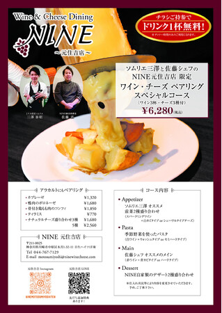 「ソムリエ三澤と佐藤シェフのNINE元住吉店限定ワイン・チーズ付きスペシャルペアリングコース」
