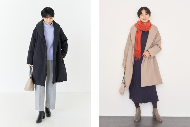 「重たいコートは肩が凝って疲れる」「子どもと思い切り遊べるコートが欲しい」「アウターは汚れが気になる」「中綿アウターはカジュアル感が強い」「クリーニング代がかかる」など、女性社員や女性デザイナー自身のリアルな声を反映して、本当に欲しいアウターを企画。忙しい毎日を送る女性に寄り添うアイテムに仕上げました。