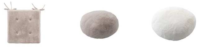 シートクッション 1,290円 /円形クッション 40cm 1,490円 /円形クッション 60cm 2,990円