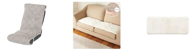座椅子パッド 1,990円 /ロングチェアシート 2,490円 /ごろ寝クッション 2,990円