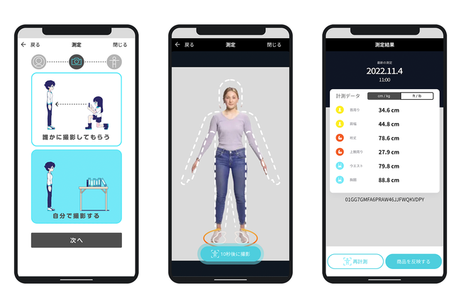 このサービスでは、服を着たままサイズを高精度に測定することができ、お客様一人ひとりに合わせたサイズのシャツをご提案できるようになりました。