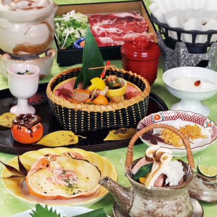 前菜盆 /上吸物 /上造り /国産牛しゃぶしゃぶ小鍋 /茶碗蒸し /焼物 /天ぷら /季節釜飯 /留椀 /デザート