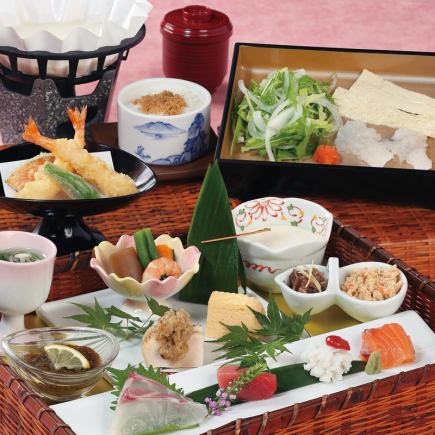 前菜盆 /吸物 /造り /季節の魚しゃぶ小鍋 /茶碗蒸し /天ぷら /季節釜飯 /留椀 /デザート