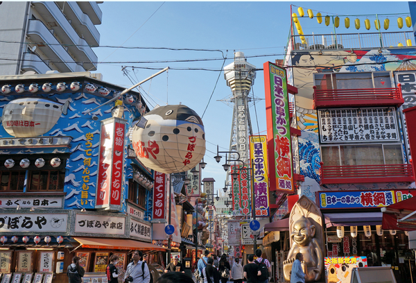 通天閣にジャンジャン横丁、大きなフグ提灯の看板などで有名な大阪市南部の下町。新世界の始まりは明治36年(1903)、天王寺および現在の新世界で催された第5回内国勧業博覧会に遡る。その跡地の東半分には天王寺公園がつくられ、残った西半分には中央にシンボルとして通天閣(初代)と、その南側に有料遊園地のルナパークがつくられた。これを契機に芝居小屋や映画館などが集結して発展し、新世界がかたちづくられていくことになる。現在、ルナパークも映画館も閉館したが、通天閣の展望台には遠方からの観光客で賑わっているほか、真下にある地下の通天閣劇場では毎週月曜日、各地方で活躍する歌姫たちが演歌を熱唱し、通天閣劇場TENGEKIでは毎週土日に漫才や上方落語などで観客を楽しませている。また、土・日曜日には松竹の芸人により落語や漫才が行われている。南北130mの間に串カツ屋、どて焼き屋、囲碁将棋クラブなど約50軒の店が軒を連ねる「ジャンジャン横丁」も元気そのもの。土日・休日になると、ツアー客が大勢で訪ねて、ビリケンさんやフグ提灯の看板などをバックに記念写真撮影を楽しむ。