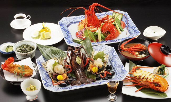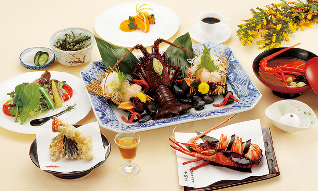 「伊勢海老のサラダ」と「伊勢海老 焼物」をお楽しみいただけます。