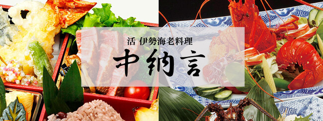 中納言名物「伊勢海老の活造り」「伊勢海老のサラダ、中納言風」「伊勢海老の中納言焼」がそろった伊勢海老堪能コースです。