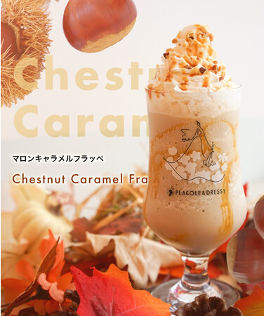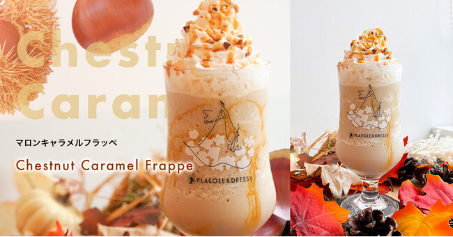 『個性が煌めく魔法の言葉』 "100人の人生に100通りに煌めく魔法をかける"をテーマに創設された古都鎌倉発のラグジュアリーブランド、PLACOLE&DRESSY(プラコレ&ドレシー)がプロデュースするカフェ&バー、『お花とドレスと紅茶のお店 DRESSY ROOM&Tea』から11月2日より新作フラッペが登場。大人気のシルキィピーチフラッペとバナナフラッペ、濃い抹茶ダルゴナフラッペ、メロン×メロンジェリーフラッペ、ダークチョコチップフラッペに次ぐ第6弾、は味わい深いコクを感じられる渋皮栗とキャラメルの相性が抜群な『マロンキャラメルフラッペ』。栗とキャラメルの絶妙なハーモニーにナッツのアクセントが加わりしっかり秋を感じられるフラッペになっております。