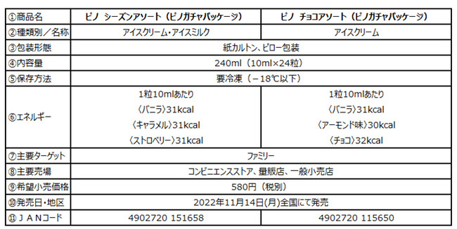「ピノ チョコアソート(ピノガチャパッケージ)」「ピノ シーズンアソート(ピノガチャパッケージ)」11月14日(月)より全国にて数量限定発売