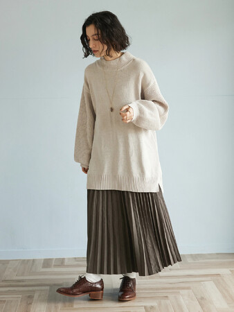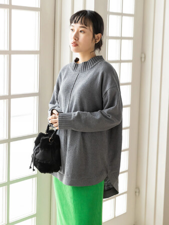 昨年大好評いただいた、裾ラウンドモールニットチュニックは形をアップグレードし、『楽ニット』シリーズとして登場。お尻まで隠れる着丈は体型カバーしながらも、ラウンドテールのデザインで女性らしい印象を与えてくれます。また、袖丈やショルダーの切り替え位置など、華奢見えするように細部までこだわってサイジングしました。