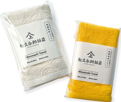 美濃和紙を細かくスリットし、撚糸することにより強度をもたせ、和紙独自の特徴を活かしたエコロジカルな素材の和紙タオル。