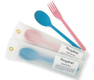 紙の原料になる植物由来の繊維「セルロースファイバー」を51%以上使用したスプーンとフォークのセット。