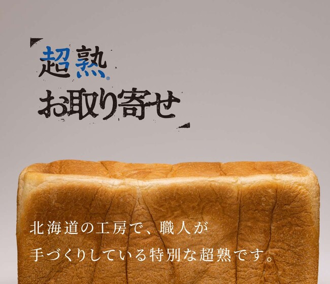 北海道の工房で、職人が手づくりしている特別な「超熟」です。使用する小麦粉はすべて“北海道産”。もっちり、しっとりした食感と、小麦のほのかな甘みや豊かな香りが広がります。
