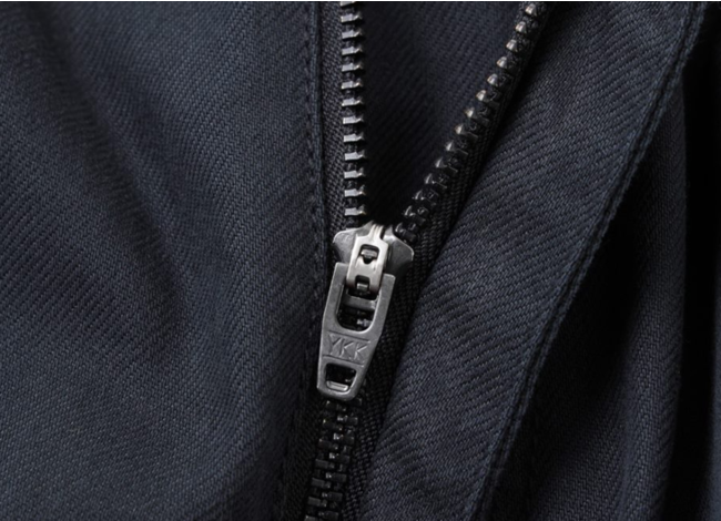 脱ぎ着で着になるのがファスナーとボタン。ファスナーには、サステナブルな「YKK“NATULON”」。ボタンには、着脱がスムーズなドットボタンを採用。