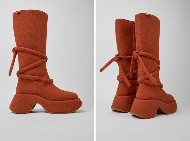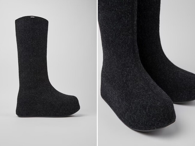 CAMPER×OTTOLINGERのカプセルコレクションには、ストラップ付きクロッグと2種類のロングブーツが登場します。それぞれライトグレー、ダークグレー、オレンジのワンカラーのみの展開となります。