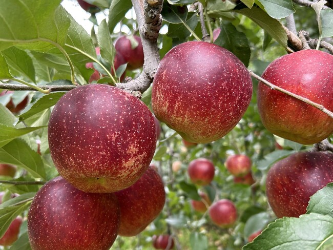 広大な土地で生き生きと育ったりんごは、丸々として色鮮やか。濃厚かつ芳醇な香りをまとった果実には、美味しさがギュッと詰まっています。