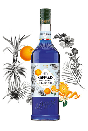 リキュール、ブルーキュラソーをイメージした、アルコールフリーのシロップ。オレンジのアロマがブルーキュラソー特有の爽やかな酸味と、砂糖漬けの柑橘のような風味を表現。