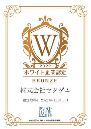 2022年11月1日、株式会社セクダムが、一般財団法人日本次世代企業普及機構(通称:ホワイト財団)が運営する「ホワイト企業認定 」を取得しましたことをお知らせいたします。