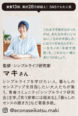 大人の青春コミュニティ「シンプルライフ研究会」主宰。「お気に入り」だけに囲まれた暮らし、「シンプルライフ」研究家。夫とふたりの娘と暮らすワーキングマザー。結婚・出産を経て、家族の時間・自分の時間を増やすため、家事をらくにしシンプルに暮らすアイデアをまとめたブログ「エコナセイカツ」のほか、著書多数。「しない家事」(すばる舎)や、「暮らしのセンスの磨き方」(宝島社)、「笑う家事には福来る」(主婦の友社)など、累計発行部数は28万部を超える。