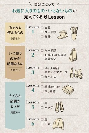 お気に入りを見極めたことで、「それ以外は手放してもいいのかも」と少しずつ気づくことができる、実戦にうつすためのステップです。