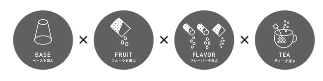 フルーツ、フレーバー、フレーバーティもそれぞれ4種類ご用意。シンプルなベースに、食感や味の変化、彩りや香りをプラスしてくれます。