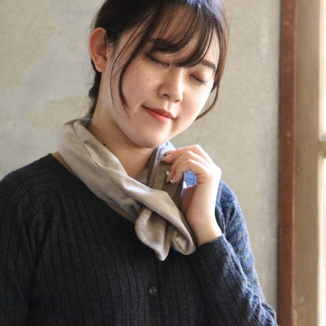 ベロア生地のマフラーはカジュアルからビジネスシーンでも愛用できる上品なユニセックスデザイン。カラーは冬の装いに馴染みやすい「グレージュ」と「ネイビー」の2色展開。ギフトにもオススメです。カバーは汚れたら洗うことができるのでいつも清潔に保てます。