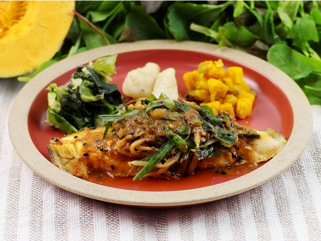 ふっくらとローストしたさわらに、もやしとニラをのせ、華やかな花椒の香りや鶏だしとごまのコクが特徴の担々ソースをかけました。野菜には食べる辣油と乾燥玉ねぎ、黒ごまを混ぜ合わせておりますので、ザクザクとした食感も併せてお楽しみください。