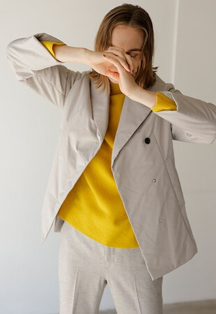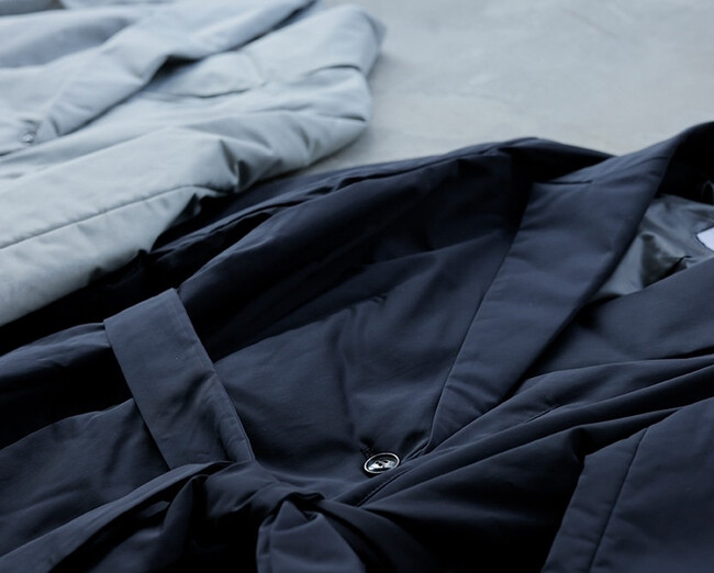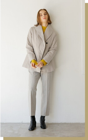 イタリア製のシート状ダウンを使用した、ステッチレスのダウン。本来のダウンコートの暖かさを備えつつ、ボリュームを抑えた軽い仕上がりが魅力です。型崩れしにくい技術により、手洗いも可能。表地には、北陸の石川県産の素材を使用。縦糸にマイクロファイバーを使用したパウダリーなタッチと上品なツヤ感が特徴です。新調すればお出かけしたくなる暖かさです。