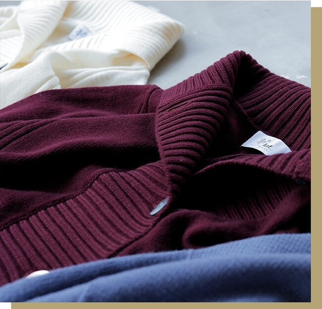 今年はすっきりとブラッシュアップした定番の立ち襟のカーディガンに加え、オーバーシルエットのVネックカーディガンがラインナップしました。