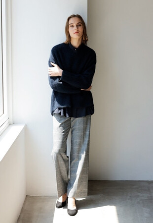 保温性に優れ、柔らかいフォックスウールの糸を使用したニット。カシミアにも劣らない上品な起毛感で毛足が長く、滑らかな質感が特徴です。ナイロンをブレンドすることで軽さも備えた、冬のスタイリングのグレード感を押し上げる主役級ニットです。