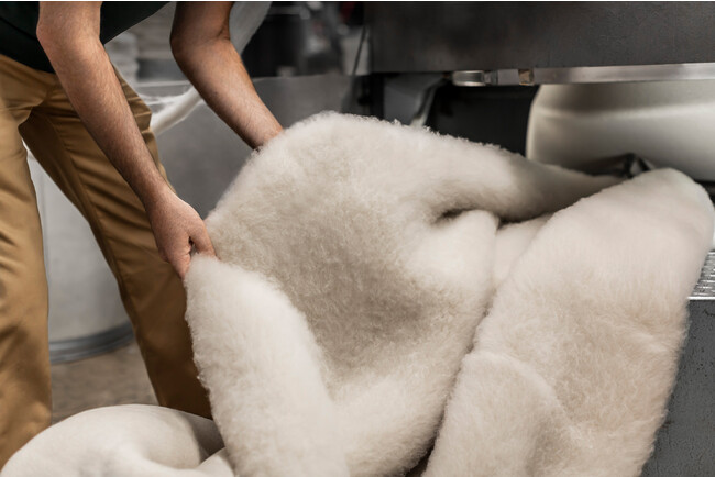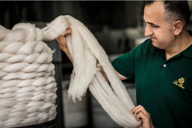 ファブリックの表面を完璧に均一にし、さらに洗練された柔らかさを高めるために、複雑な仕上げの工程を経ることとなります。毛の長さを調節するために特殊な機械で毛をカットし、「シアリング」と呼ばれる作業で完璧に毛を整えます。キャッシュファーの質感は、カシミヤの純度の高さ、天然の軽さ、暖かく包み込むような色合いへの賛辞なのです。