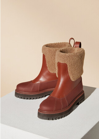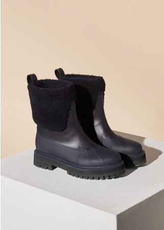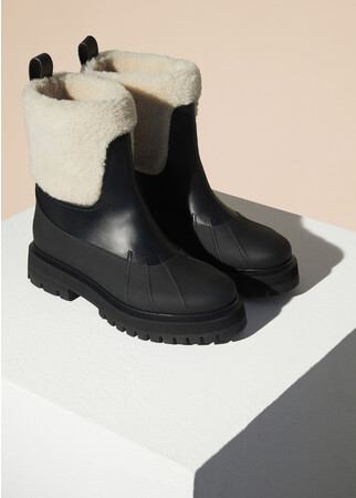 アクセサリーでは、キャッシュファーのライニングが付いたウインド素材のジータ・バケットハット、すべてキャッシュファー製のアラスカンハット、アイコニックなリージェント・アンクルブーツをご提案します。クラシックなレインブーツからインスピレーションを得たブーツのシャフト部分はキャッシュファーとカーフスキンのコンビネーション、シャフトとソールの接合部は樹脂で保護されています。