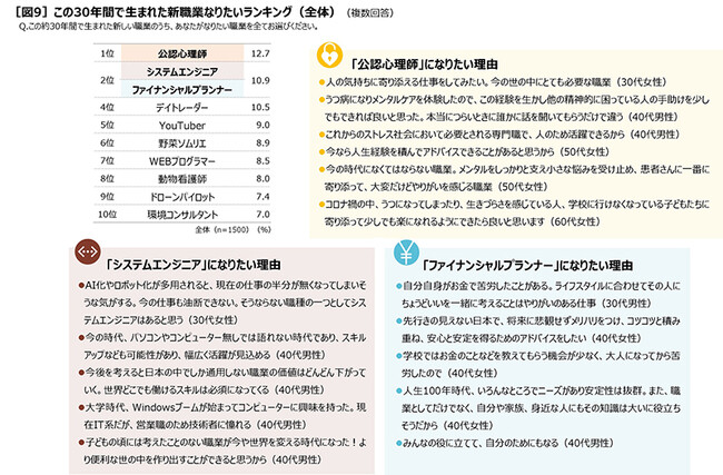 ■この30年間で生まれた新しい職業でなりたい職業TOP3「公認心理師」「SE」「FP」 なりたい理由は「やりがい」