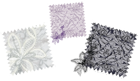 白鳥の羽根の陰影のような、ドラマティックな大花柄の編みレースを贅沢に使用。サテンの光沢をアクセントに組み合わせ、バレエ衣装ような雰囲気に仕上げました。ヘッドアクセサリーをイメージした、豪華なモチーフをアシンメトリーにあしらいポイントに。カラーは、バレエ戯曲「白鳥の湖」の登場人物をイメージ。ホワイトはオデット(白鳥)が、ラベンダーは月夜に照らされたオデットが、ブラックはオディール(黒鳥)がモチーフとなっています。