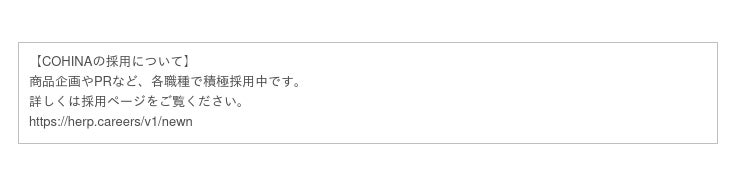公式Instagram:@cohina.official(https://www.instagram.com/cohina.official/)