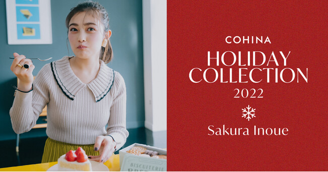 COHINA Holiday Collection 2022は、イメージモデルとしてタレントの井上咲楽さんをお迎えしました。レンガの街並みをドレスアップして歩いたり、大好きな生クリームたっぷりのケーキを思いっきり頬張ったり、近所のカフェでカフェラテで一息ついたり。そんなあなたらしいホリデーシーズンを共に過ごすお洋服をお届けします。
