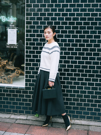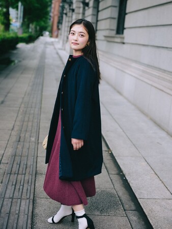 細畝コーデュロイや立体的なボンディング素材でシーズンムードを高めつつ、小柄さんを美しく見せるシルエット作りにこだわりました。また、今季はドラマチックに揺れ動くエスカルゴシルエットのスカートや、コーデにリズムを動かすプリーツスカートに腰位置を高く見せるハイウエストワイドパンツなど、ボトムス類にもご注目ください。