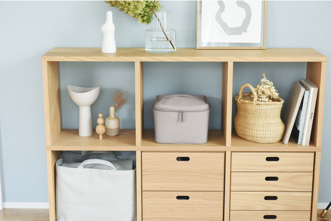 毎日飲む薬やサプリメント、もしもに備えた常備薬、ケガをしたらサッと使いたい絆創膏など、すぐに手の届く場所に保管しておきたい薬や衛生用品。だからこそ、bon moment(ボンモマン)の救急箱は、リビングで見せ置きできるシンプルデザインで作られました。