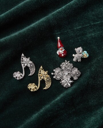 北欧のおとぎ話に登場する赤い帽子の妖精「トムテ」が雪だるまになったブローチや、ハートのギフトボックスを抱えたクマなどキュートなブローチも展開。