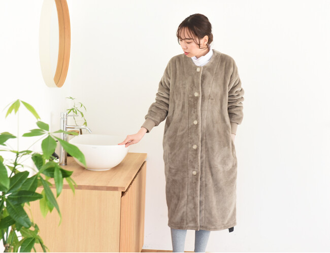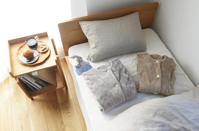 まだ暖房が効く前の寒い朝も、サッと羽織ればあったか。これさえあれば「朝ベッドから出られる」、そんな着心地を目指した商品です。