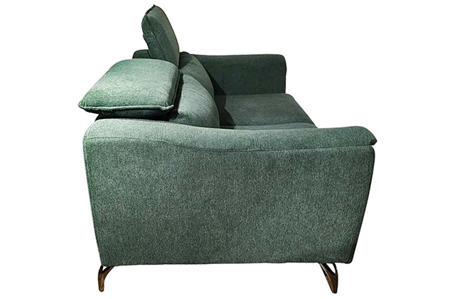 優しい曲線に安心感を覚える北欧風デザインのファブリックソファーですが、シルバーのクローム調の脚がソリッドな印象を与え、木製脚ではないスタイリッシュさが感じられます。ヘッドレストは左右1つずつ動かすことができる便利な仕様です。2人掛けと3人掛けの2サイズ展開です。