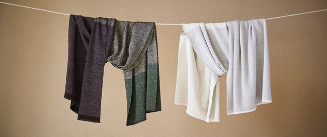 博多織の帯に使用する高級絹⽷の感触を、日常のファッションに。