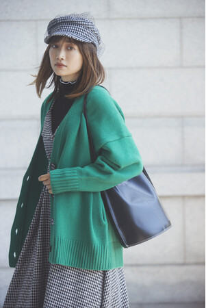 ウールの産地である尾州で製作したオリジナルのウール素材を使用。エレガントで女性らしい他にはあまりないチェックパターンで、ヨーロッパのヴィンテージを思わせる雰囲気が特徴。