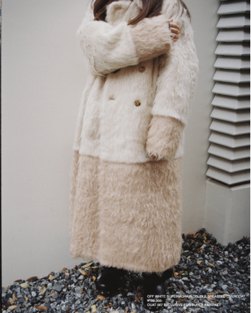 今回は超長毛足のスーパーモヘアを使用したオーバージャケット、ロングコート、オーバーベストの3型よりインラインでは通常展開のない限定カラーをOUAT直営店とあわせ、販売。