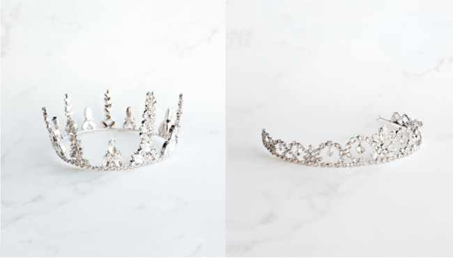 (左)韓国で人気の小さめクラウン。ビジューの輝きが360度どこから見ても美しいデザインで、フォトウェディングにもおすすめです。