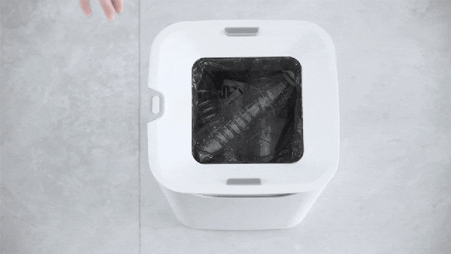 ボタンを1.5秒長押しすると、自動でゴミ袋の口を閉じてしっかりとシーリング。ゴミ袋を密閉したら、自動で新しいゴミ袋がセットされます。