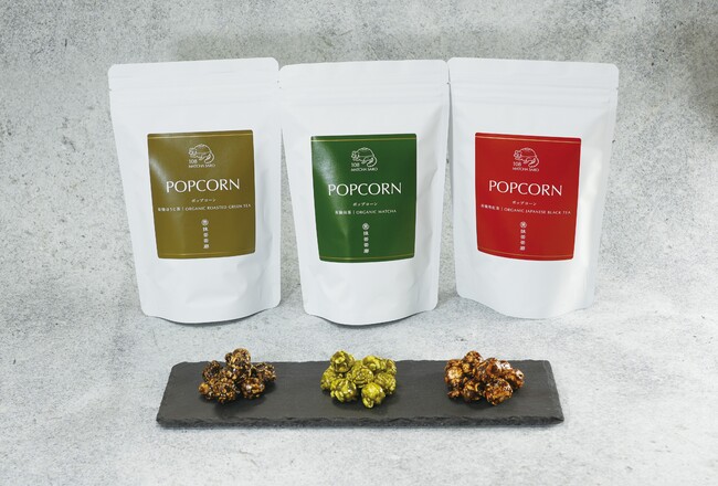 ポップコーン(抹茶・ほうじ茶・和紅茶) 各750円